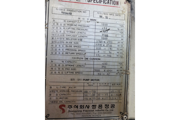 유압프레스 1200톤